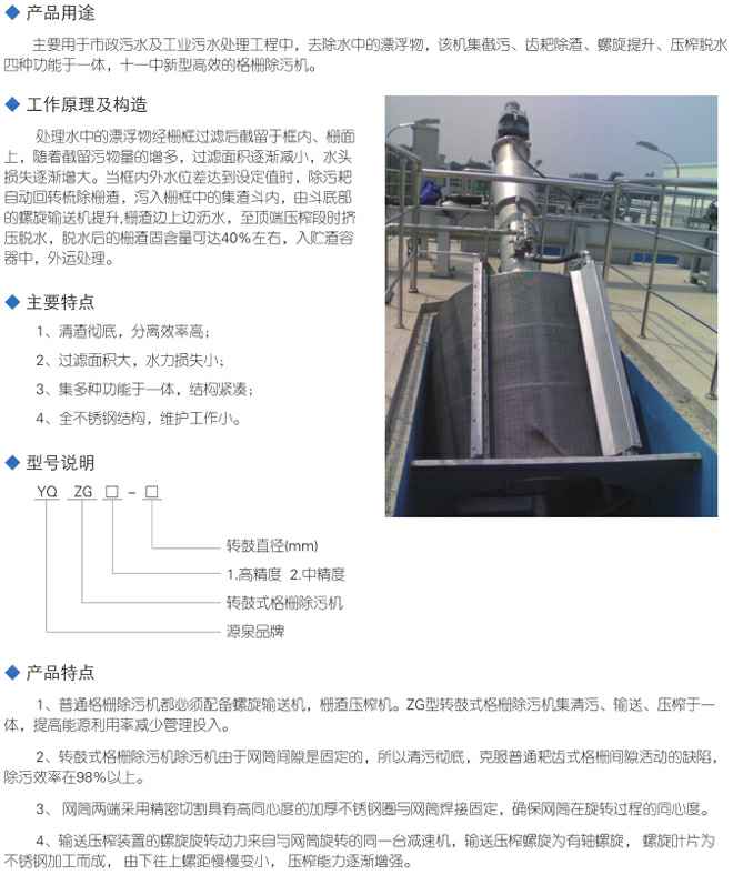 ZG型转鼓式格栅除污机